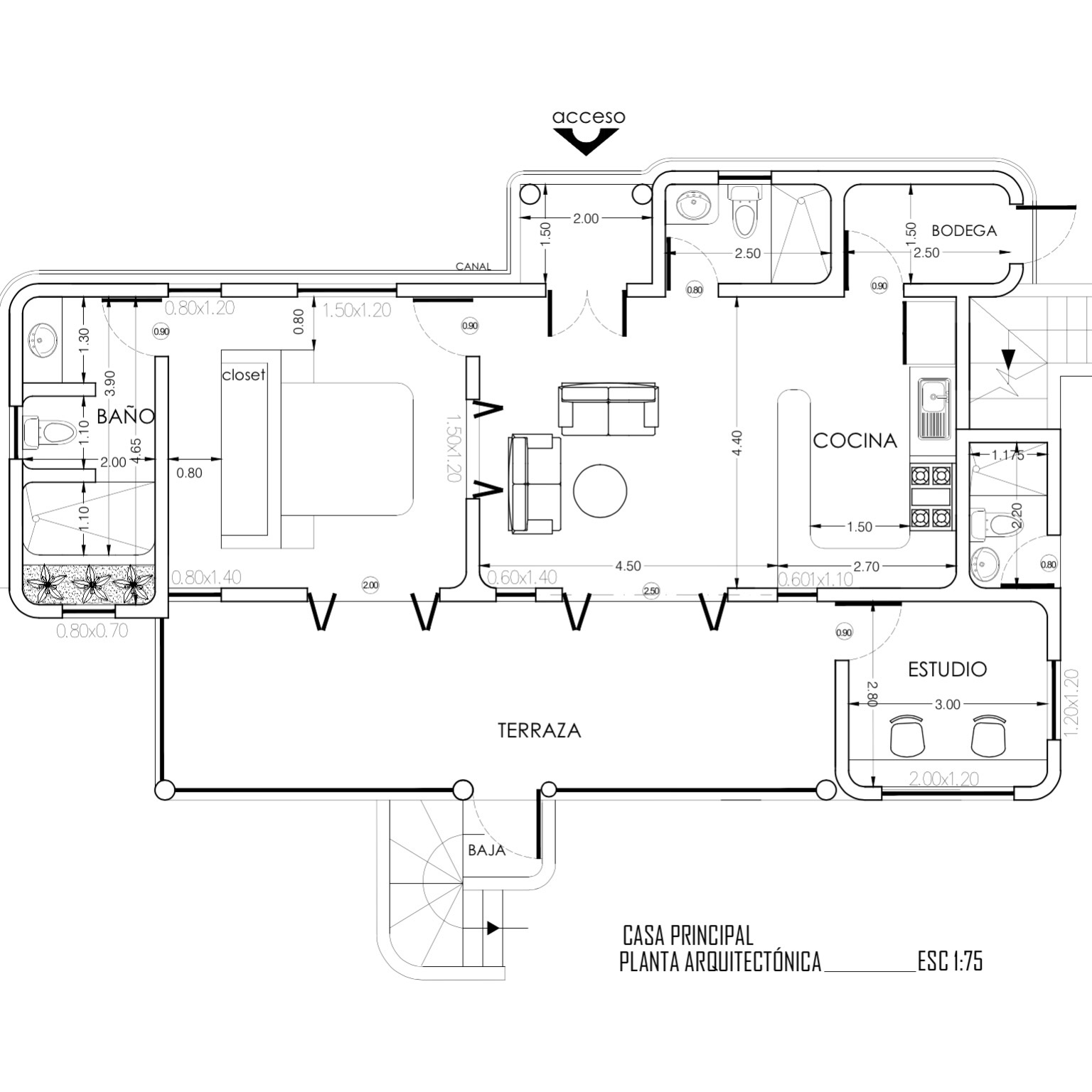 The stairs leading down to the Laguna from the porch will also provide security allowing the house to remain open to the night breezes.