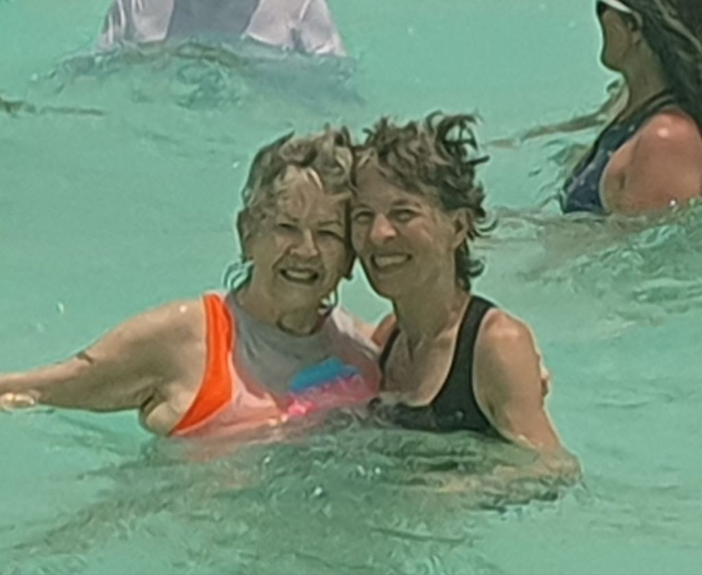 Lisa and her mom.Arco the swimming dog loves the boat.Nothing better than staying cool with friends.